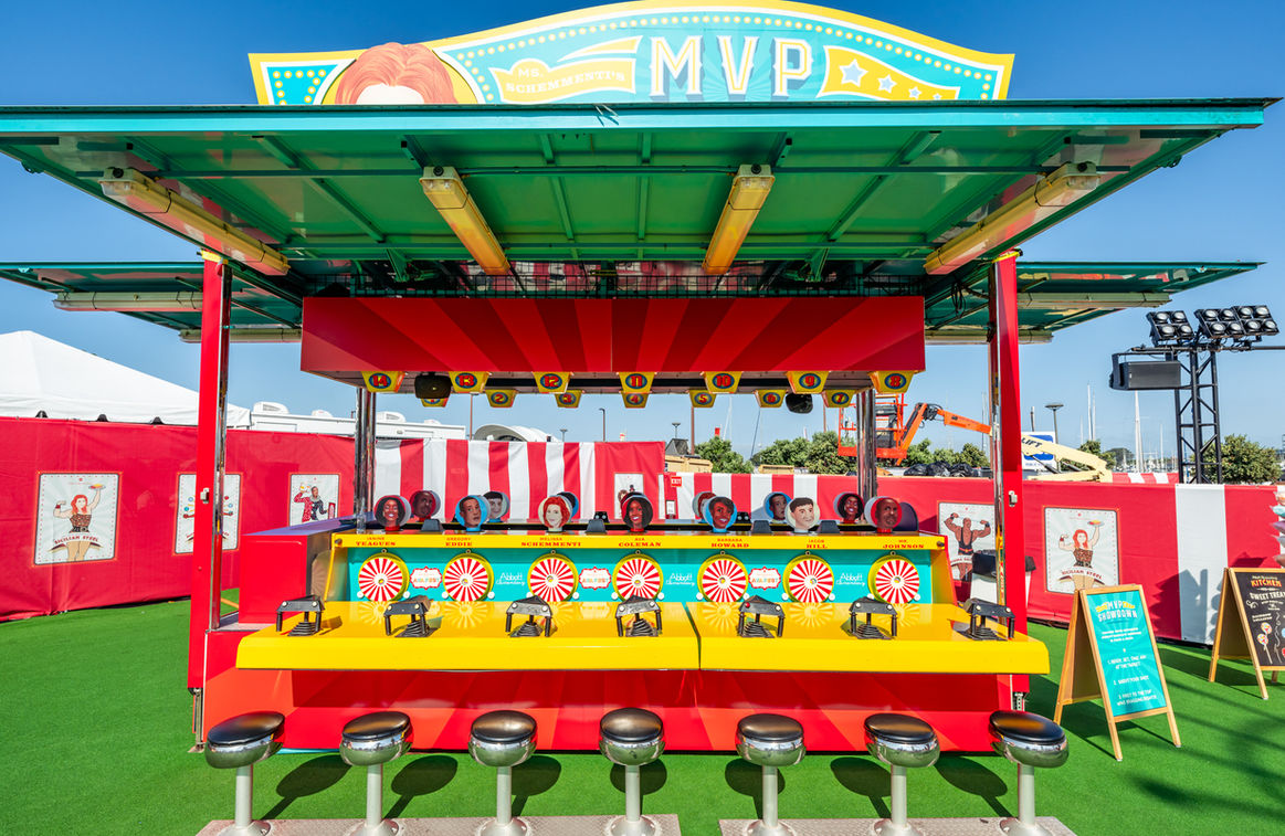 Designed to maximize the open-air environment, the festival boasted an array of lively games, rides, and interactive elements.The visual branding of A.V.A. Fest took cues from the dazzling world of circuses, carnivals, and festivals. A vibrant color palette, playful fonts, and vintage circus-inspired character illustrations gave the event its whimsical, energetic vibe. School-themed details like brick walls and chalkboards tied these carnival elements back to the familiar world of Abbott Elementary, grounding the fantastical setting in a place fans instantly recognized.